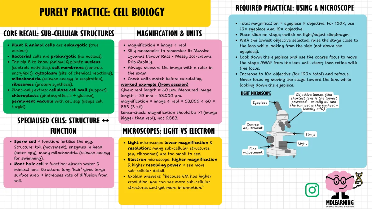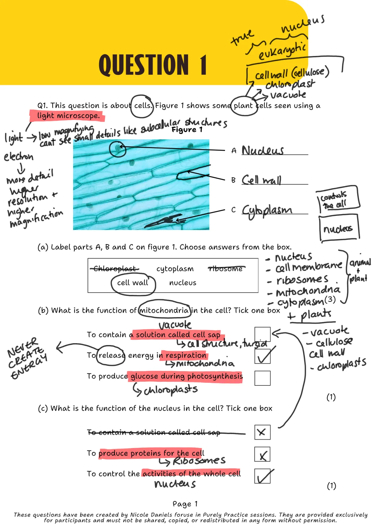 We worked through biology Paper 1 questions (cells, magnification, prokaryotes vs eukaryotes), breaking down what the examiner is actually looking for and how to secure marks.